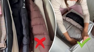 لمنع السترات من احتلال نصف الخزانة، يمكنك استخدام حيلة حياتية مثيرة للاهتمام. تم نسخ الرابط كيفية تخزين السترات الشتوية / الكولاج: My، الصورة: لقطات من